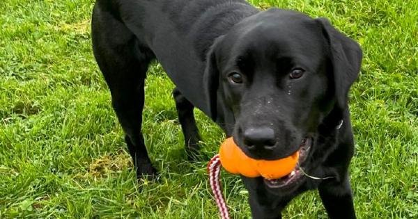 GEORGIE the Labrador might look like any other pet dog, gambolling about in his family’s garden, playing with a ball.