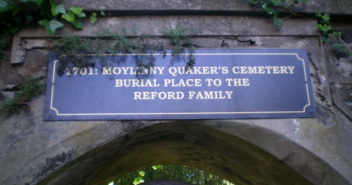 Above the gates, a much more modern addition explains the significance of this tiny walled time capsule - a slightly incongruous blue sign that reads ‘1701: Moylinny Quaker’s Cemetery, burial place to the Reford Family’.