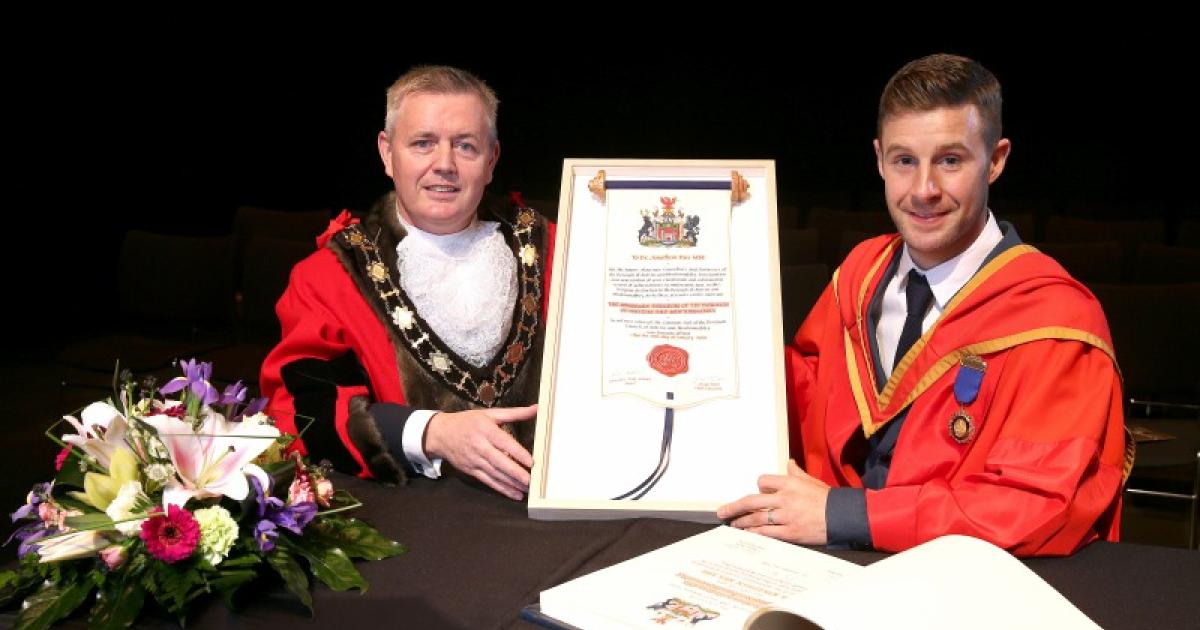 Jonathan’s name was added to the Council’s Roll of Honourable Freemen alongside other sporting heroes from the Borough including champion jockey Sir AP McCoy OBE and rugby legend Dr Willie John McBride CBE.