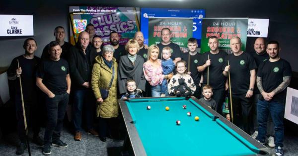 Pool fanatic and publican Tyler McConnell (37) from Doagh passed away from cancer in November, and the Mark Allen Foundation event aimed to raise money to support his partner Kirsty and three young children Sophia, Reggie and Ronnie.